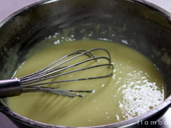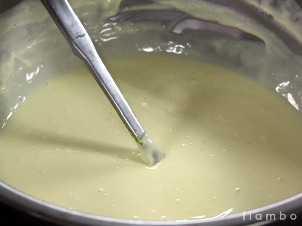 以隔水加熱法讓布丁融化與奶油完美融合