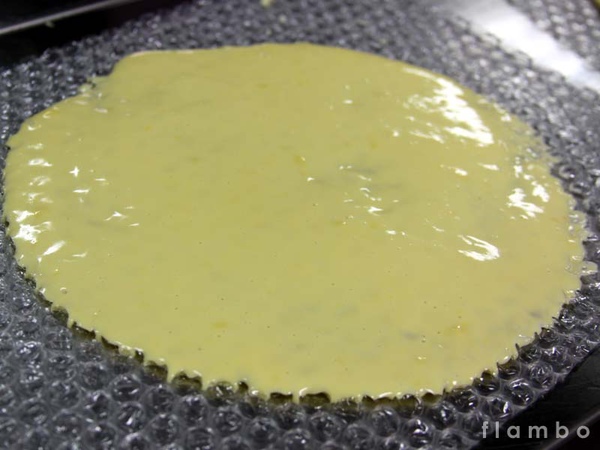 將奶油布丁均勻鋪上氣泡紙