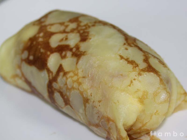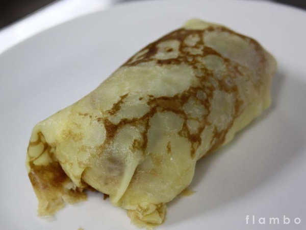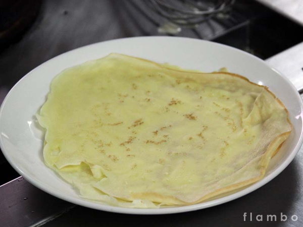 以平底鍋將餅皮煎熟、就像做法式可麗餅的外皮